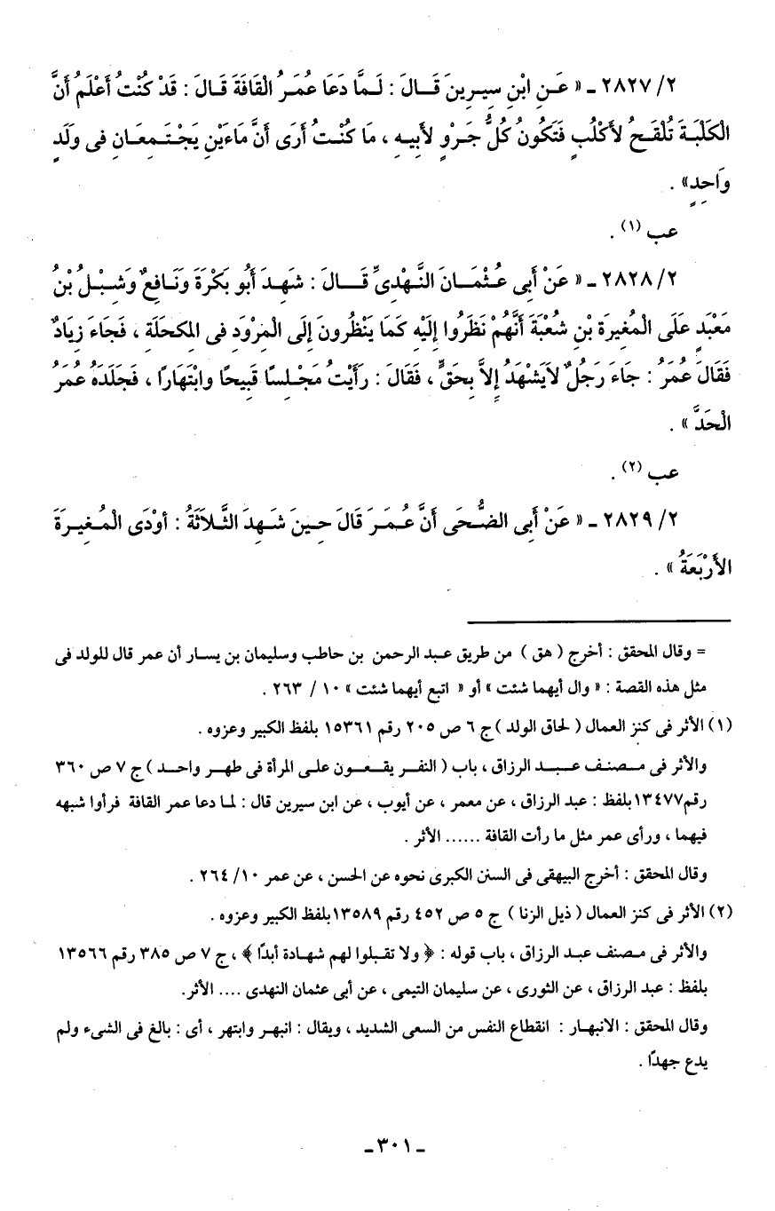 2/ 2829 - "عَن أَبِى الضُّحَى أَنَّ عُمَرَ قَالَ حِدينَ شَهِدَ الثَّلَاثَةُ: أوْدَى الْمُغِيرَةَ الأَرْبَعَةُ".