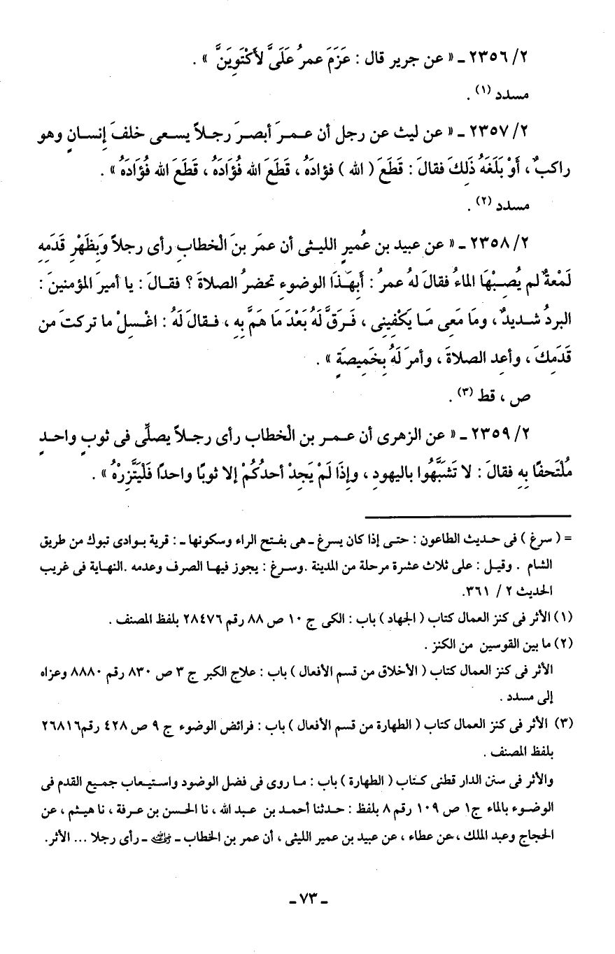 2/ 2356 - "عن جرير قال: عَزَمَ عمرُ عَلَىَّ لأَكْتَوِيَنَّ".