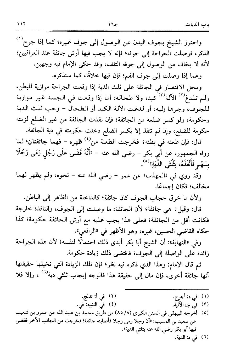 وفي "النهاية": أن الشيخ أبا بكر أبدى ذلك احتمالاً لنفسه؛ لأن هذه الجراحة زائدة على الواصلة إلى الجوف؛ فاقتضى ذلك زيادة حكومة.