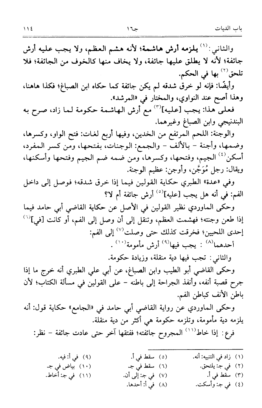 وحكى الماوردي نظير القولين في الأصل عن حكاية القاضي أبي حامد فيما إذا طعن وجنته؛ فهشمت العظم، وتنقل إلى أن وصل إلى الفم، أو كانت [في] إحدى اللحيين؛ فخرقت كذلك حتى وصلت إلى الفم: