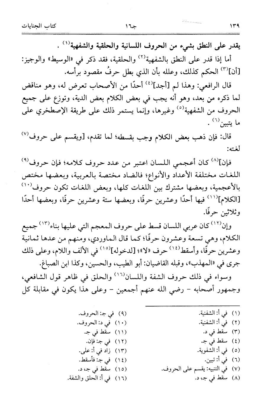 قال الرافعي: وهذا لم [أجد] أحداً من الأصحاب تعرض له، وهو مناقض لما ذكره من بعد، وهو أنه يجب في بعض الكلام بعض الدية، وتوزع على جميع الحروف من الشفهية وغيرها، وإنما يستمر ذلك على طريقة الإصطخري على ما يتبين.