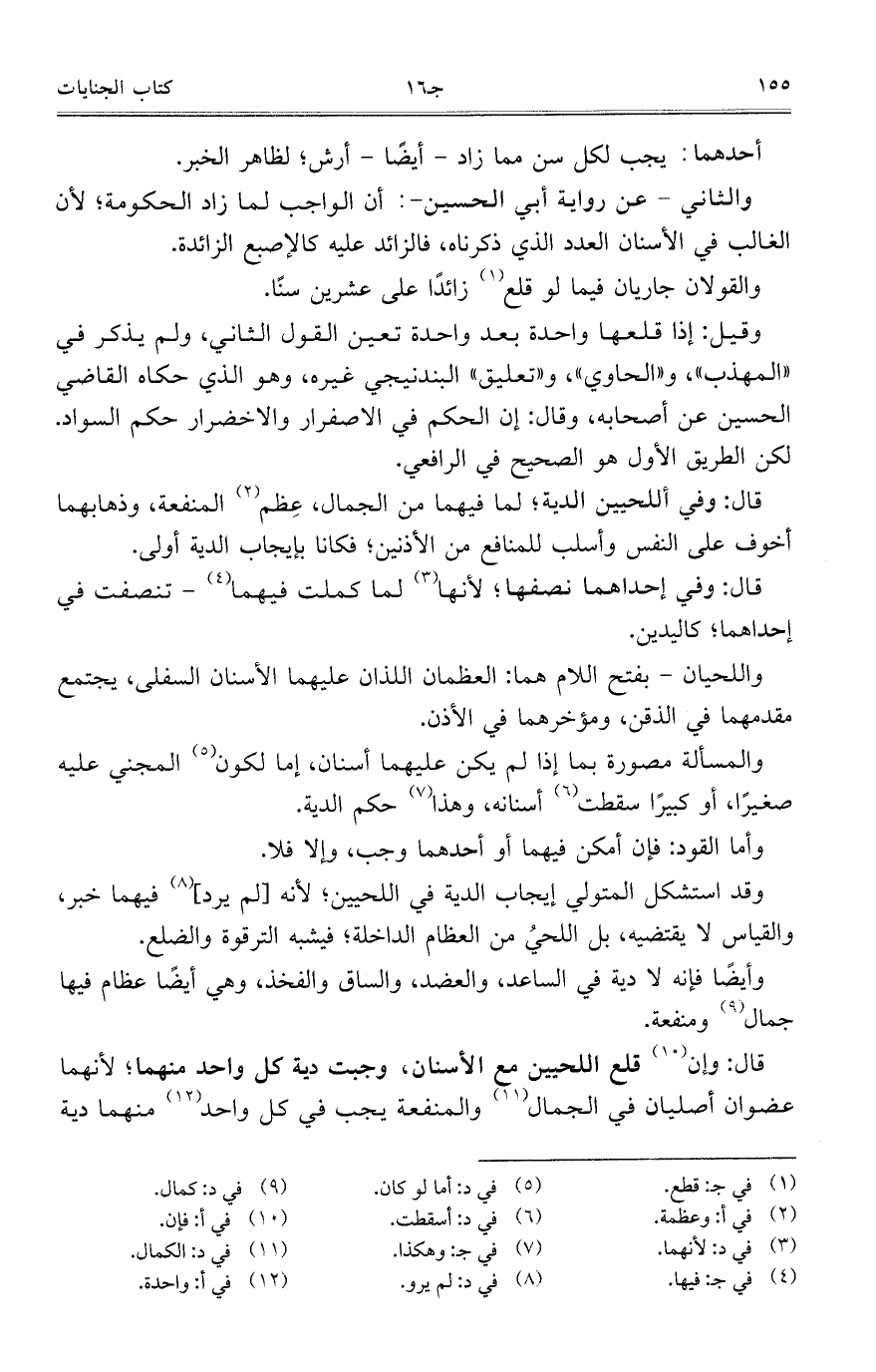 وقد استشكل المتولي إيجاب الدية في اللحيين؛ لأنه [لم يرد] فيهما خبر، والقياس لا يقتضيه، بل اللحيُ من العظام الداخلة؛ فيشبه الترقوة والضلع.