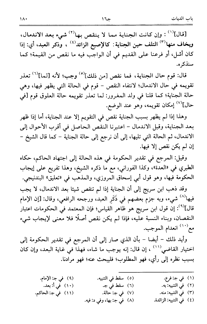 وهذا إذا لم يظهر بسبب الجناية نقص في التقويم إلا عند الجناية، أما إذا ظهر بعد الجناية، وقبل الاندمال- اعتبرنا النقص الحاصل في أقرب الأحوال إلى الاندمال، ثم الحالة التي تليها، إلى أن نرجع إلى حالة الجناية- كما قال الشيخ – إن لم يكن نقص إلا فيها.