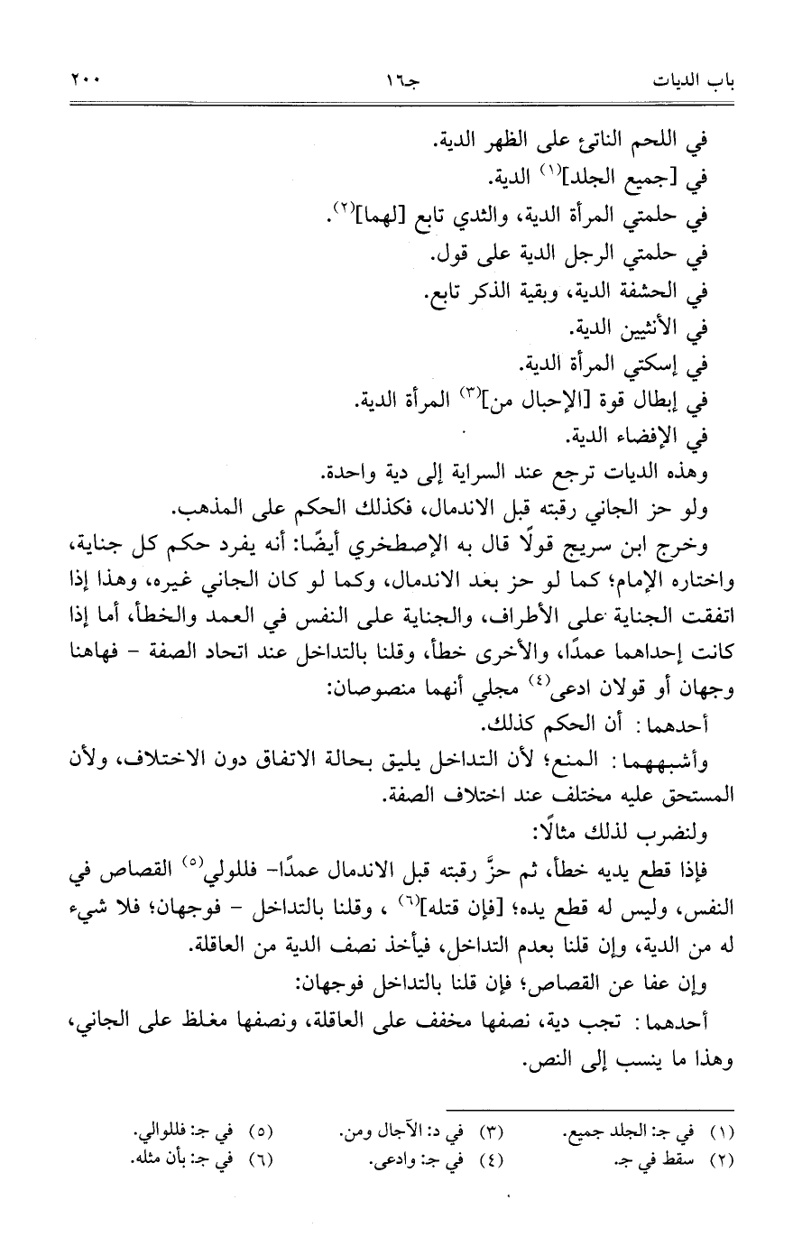 وخرج ابن سريج قولاً قال به الإصطخري أيضاً: أنه يفرد حكم كل جناية، واختاره الإمام؛ كما لو حز بعد الاندمال، وكما لو كان الجاني غيره، وهذا إذا اتفقت الجناية على الأطراف، والجناية على النفس في العمد والخطأ، أما إذا كانت أحداهما عمداً، والأخرى خطأ، وقلنا بالتداخل عند اتحاد الصفة – فهاهنا وجهان أو قولان ادعى مجلي أنهما منصوصان: