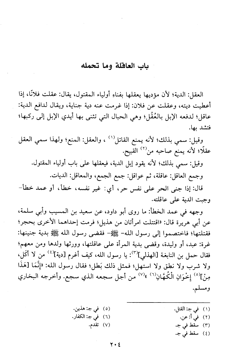 وجهه في عمد الخطأ: ما روى أبو داود، عن سعيد بن المسيب وأبي سلمة، عن أبي هريرة قال: "اقتتلت امرأتان من هذيل؛ فرمت أحداهما الأخرى بحجر؛ فقتلتها؛ فاختصموا إلى رسول الله - صلى الله عليه وسلم - بدية جنينها: غرة: عبد، أو وليدة، وقضى بدية المرأة على عاقلتها، وورثها ولدها ومن معهم؛ فقال حمل بن النابغة [الهذلي]: يا رسول الله، كيف أغرم [دية] من لا أكَل، ولا شرب ولا نطق ولا استهل؛ فمثل ذلك بَطل؛ فقال رسول الله: "إِنَّمَا [هَذضا مِنْ] إِخْوَانِ الْكُهَّانِ" من أجل سجعه الذي سجع. وأخرجه البخاري ومسلم.