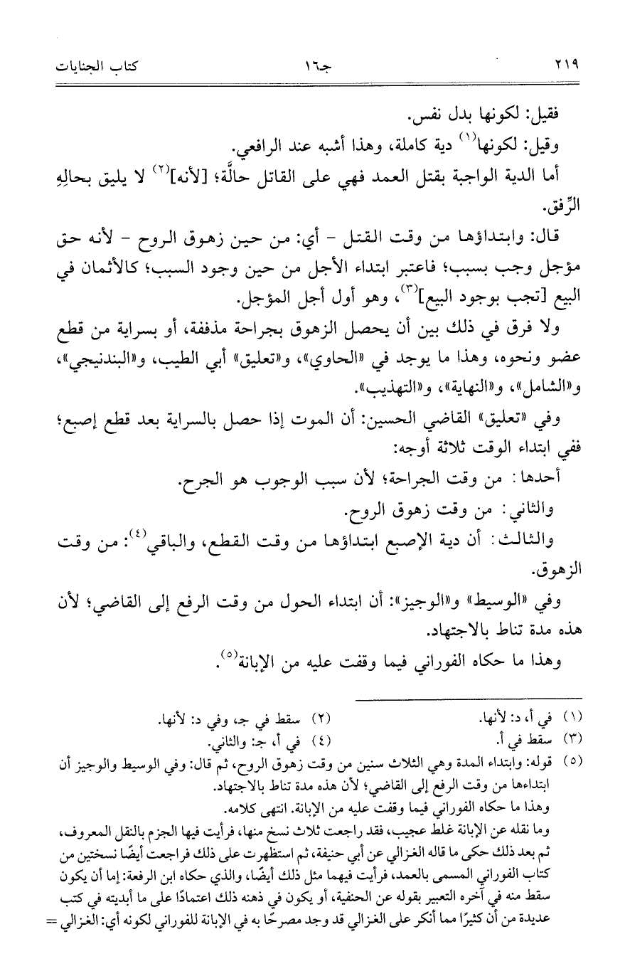 ولا فرق في ذلك بين أن يحصل الزهوق بجراحة مذففة، أو بسراية من قطع عضو ونحوه، وهذا ما يوجد في "الحاوي"، و"تعليق" أبي الطيب، و"البندنيجي"، و"الشامل"، و"النهاية"، و"التهذيب".