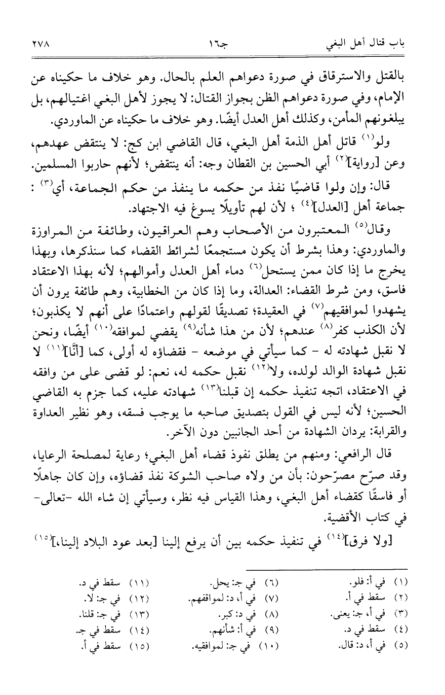 قال الرافعي: ومنهم من يطلق نفوذ قضاء أهل البغي؛ رعاية لمصلحة الرعايا، وقد صرّح مصرّحون: بأن من ولاه صاحب الشوكة نفذ قضاؤه، وإن كان جاهلاً أو فاسقاً كقضاء أهل البغين وهذا القياس فيه نظر، وسيأتي إن شاء الله – تعالى- في كتاب الأقضية.