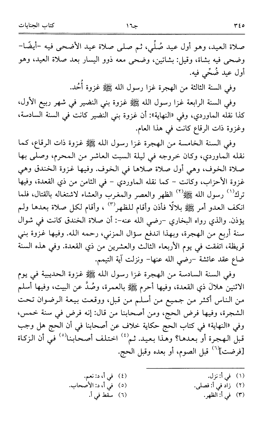 وفي السنة السادسة من الهجرة غزا رسول الله صلى الله عليه وسلم غزوة الحديبية في يوم الاثنين هلالَ ذي القعدة، وفيها أحرم صلى الله عليه وسلم بالعمرة، وصُدَّ عن البيت، وفيها أسلم من الناس أكثر من جميع من أسلم من قبل، ووقعت بيعة الرضوان تحت الشجرة، وفيها فرض الحج، ومن أصحابنا من قال: إنه فرض في سنة خمس، وفي "النهاية" في كتاب الحج حكاية خلاف عن أصحابنا في أن الحج هل وجب قبل الهجرة أو بعدها؟ وهذا بعيد. ثم اختلف أصحابنا في أن الزكاة [فرضت] قبل الصوم، أو بعده وقبل الحج.
