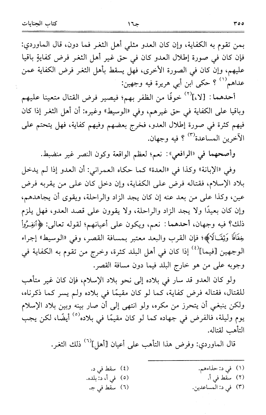 قال الماوردي: وفرض هذا التأهب على أعيان [أهل] ذلك الثغر.