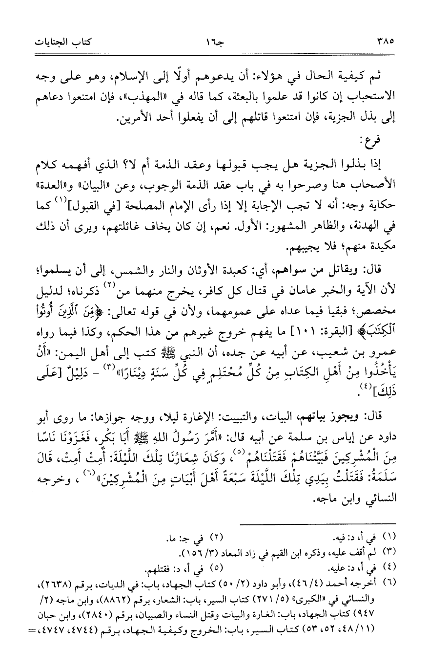 ثم كيفية الحال في هؤلاء: أن يدعوهم أولاً إلى الإسلام، وهو على وجه الاستحباب إن كانوا قد علموا بالبعثة، كما قاله في "المهذب"، فإن امتنعوا دعاهم إلى بذل الجزية، فإن امتنعوا قاتلهم إلى أن يفعلوا أحد الأمرين.