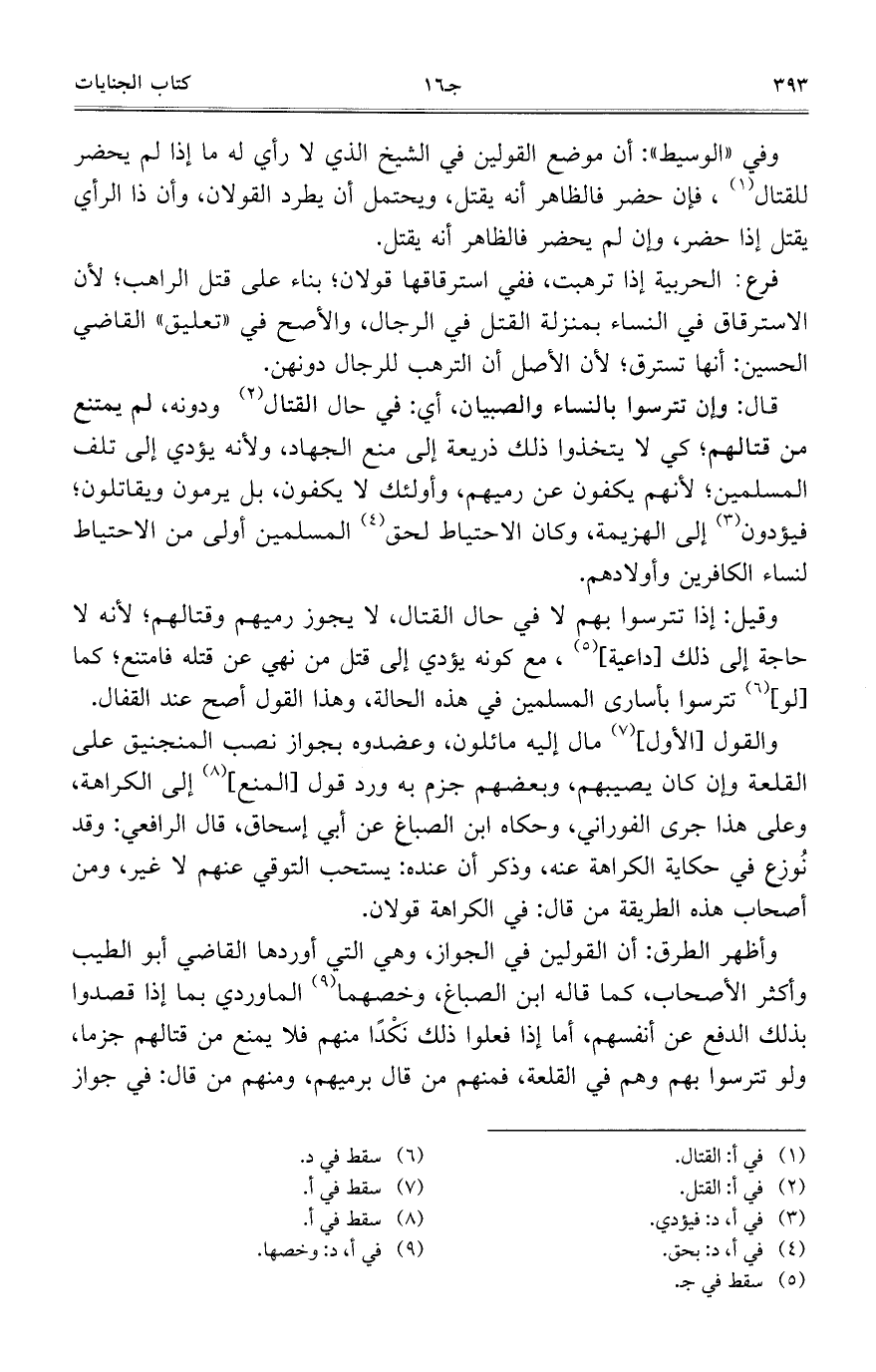 وفي "الوسيط": أن موضع القولين في الشيخ الذي لا رأي له ما إذا لم يحضر للقتال، فإن حضر فالظاهر أنه يقتل، ويحتمل أن يطرد القولان، وأن ذا الرأي يقتل إذا حضر، وإن لم يحضر فالظاهر أنه يقتل.