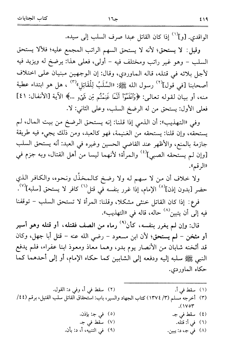 الواقدي. [و] إذا كان القاتل عبدا صرف السلب إلى سيده.