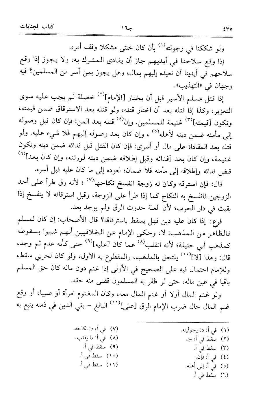 ولو غنم المال أولا أو غنم المال معه، وكان المغنوم امرأة أو صبياً، أو وقع غنم المال حال ضرب الإمام الرق [على] البالغ – بقي الدين في ذمته يتبع به