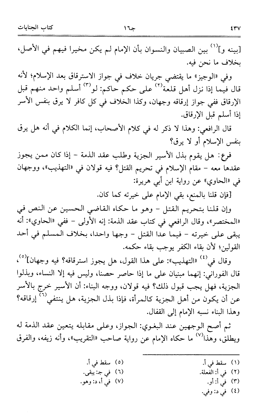 وقال في "التهذيب": على هذا القول، هل يجوز استرقاقه؟ فيه وجهان]، قال الفوراني: إنهما مبنيان على ما إذا حاصر حصنا، وليس فيه إلا النساء، وبذلوا الجزية، فهل يجب قبول ذلك؟ فيه قولان، ووجه البناء: أن الأسير خرج بالأسر عن أن يكون من أهل الجزية كالمرأة، فإذا بذل الجزية، هل ينتفي إرقاقه؟ وهذا البناء نسبه الإمام إلى القفال.