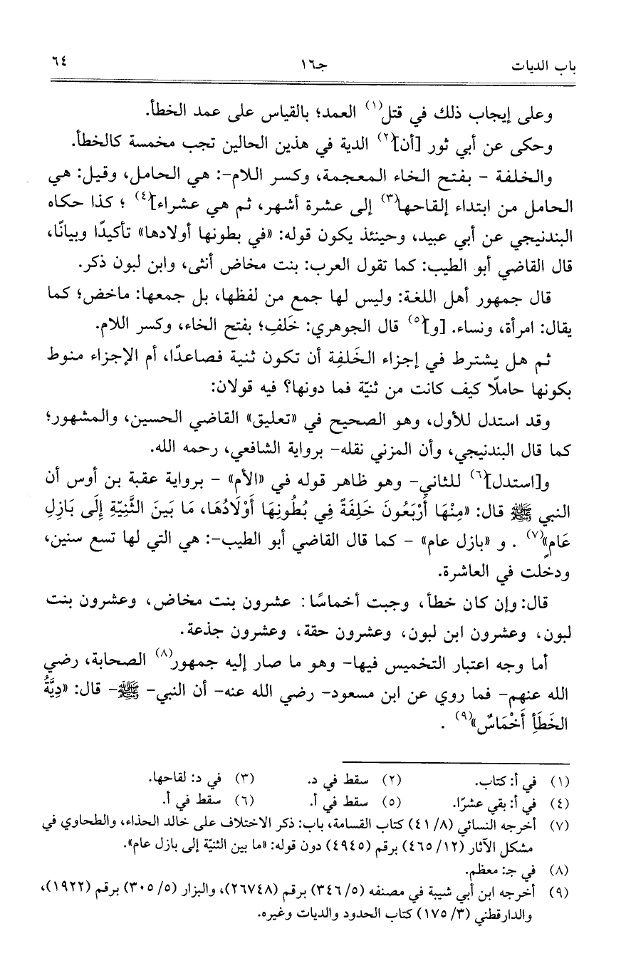 قال: وإن كان خطأ، وجبت أخماساً: عشرون بنت مخاض، وعشرون بنت لبون، وعشرون ابن لبون، وعشرون حقة، وعشرون جذعة.