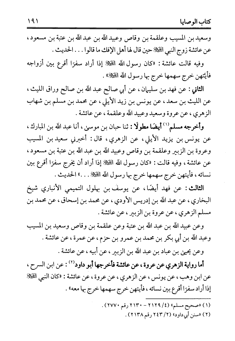 أما رواية الزهري عن عروة، عن عائشة فأخرجها أبو داود (¬2): عن ابن السرح، عن ابن وهب، عن يونس، عن الزهري، عن عروة، عن عائشة: "كان النبي -عليه السلام- إذا أراد سفرًا أقرع بين نسائه، فأيتهن خرج سهمها خرج بها معه".