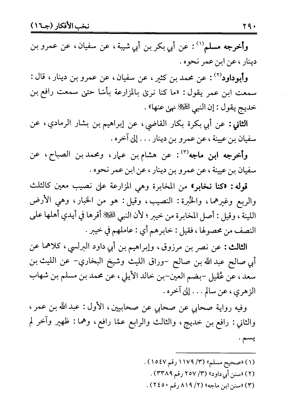 وفيه رواية صحابي عن صحابي عن صحابيين، الأول: عبد الله بن عمر، والثاني: رافع بن خديج، والثالث والرابع عمَّا رافع، وهما: ظهير وآخر لم يسم.