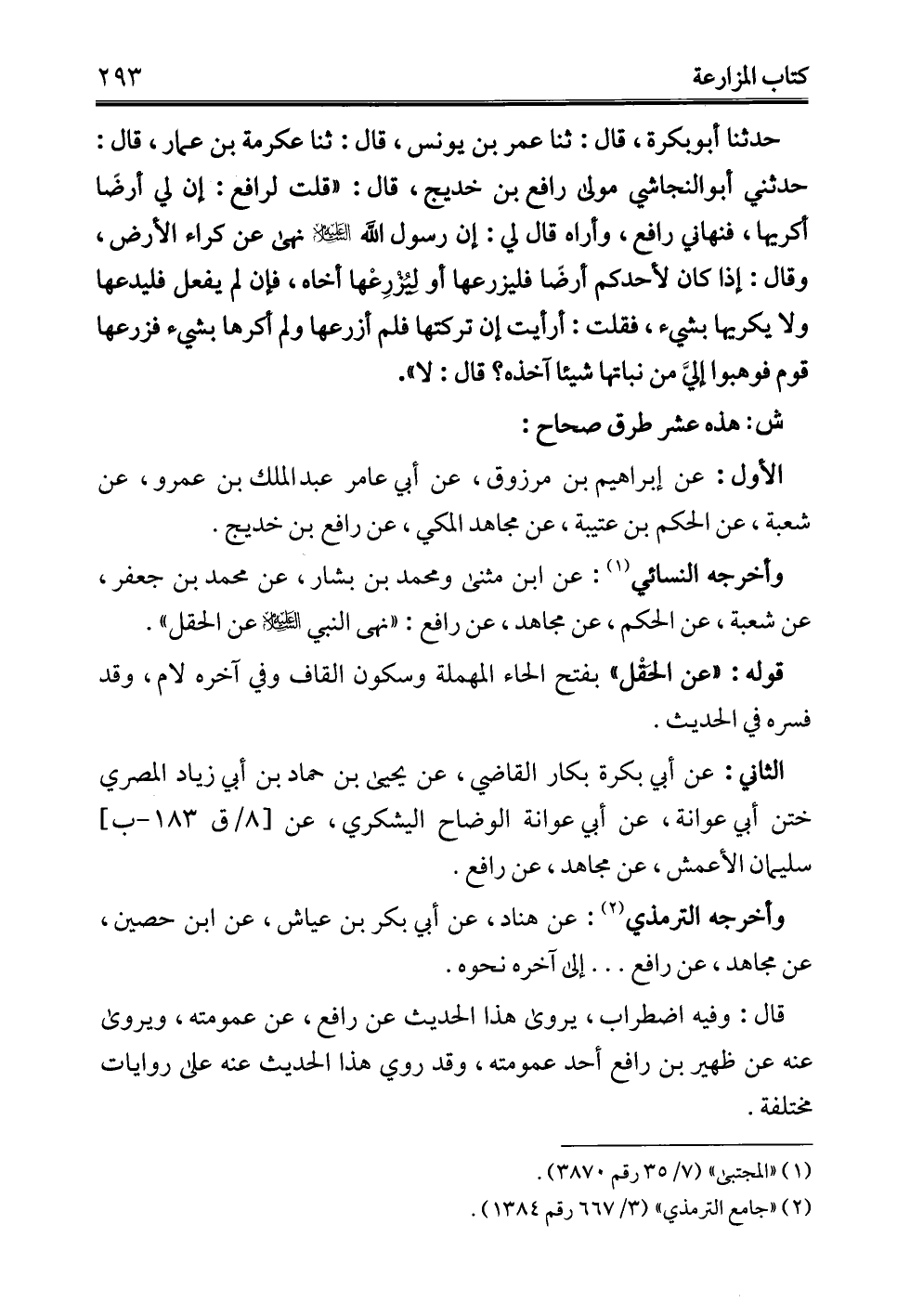 وأخرجه النسائي (¬1): عن ابن مثنى ومحمد بن بشار، عن محمد بن جعفر، عن شعبة، عن الحكم، عن مجاهد، عن رافع: "نهى النبي -عليه السلام- عن الحقل".