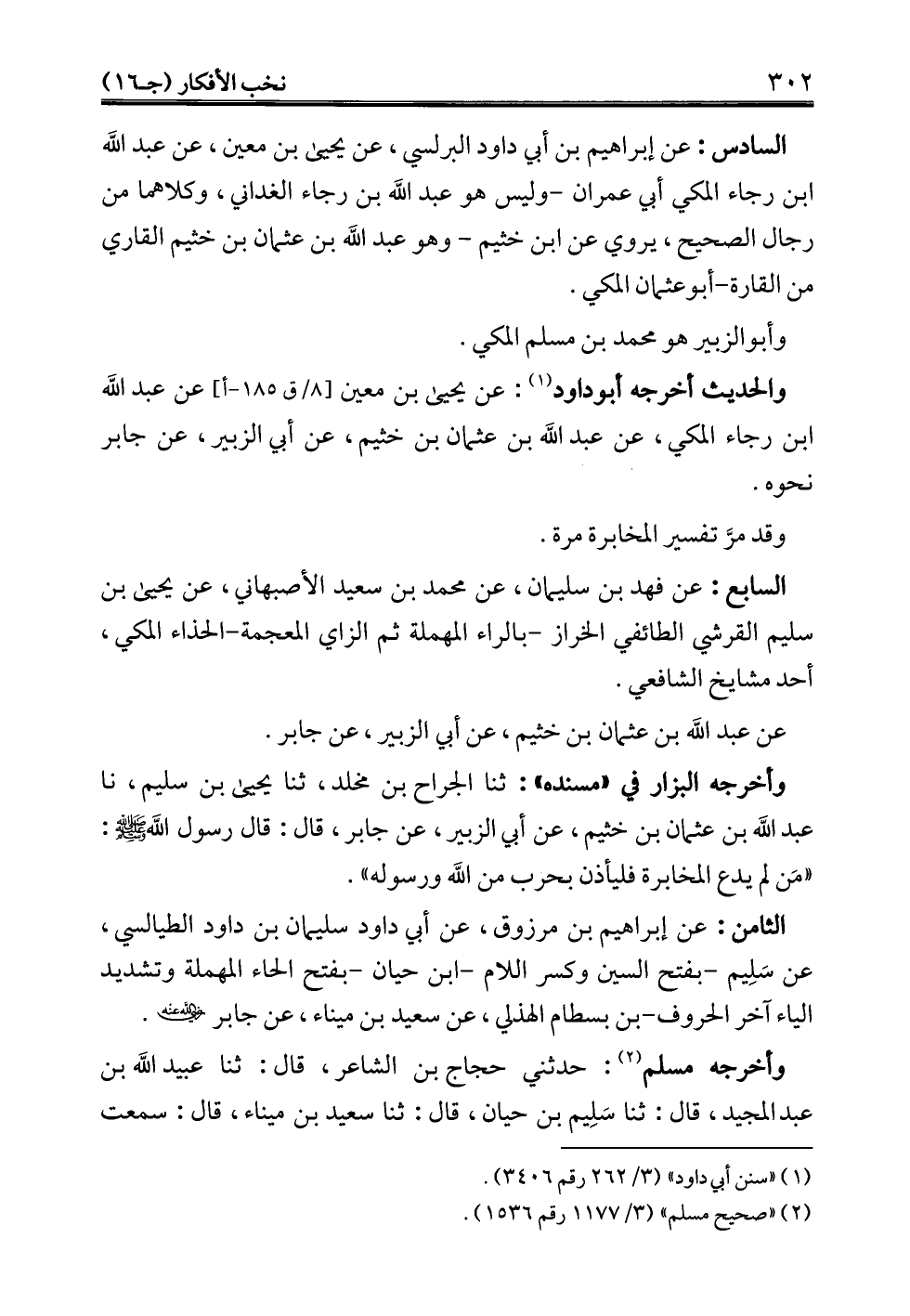 والحديث أخرجه أبو داود (¬1): عن يحيى بن معين عن عبد الله ابن رجاء المكي، عن عبد الله بن عثمان بن خثيم، عن أبي الزبير، عن جابر نحوه.