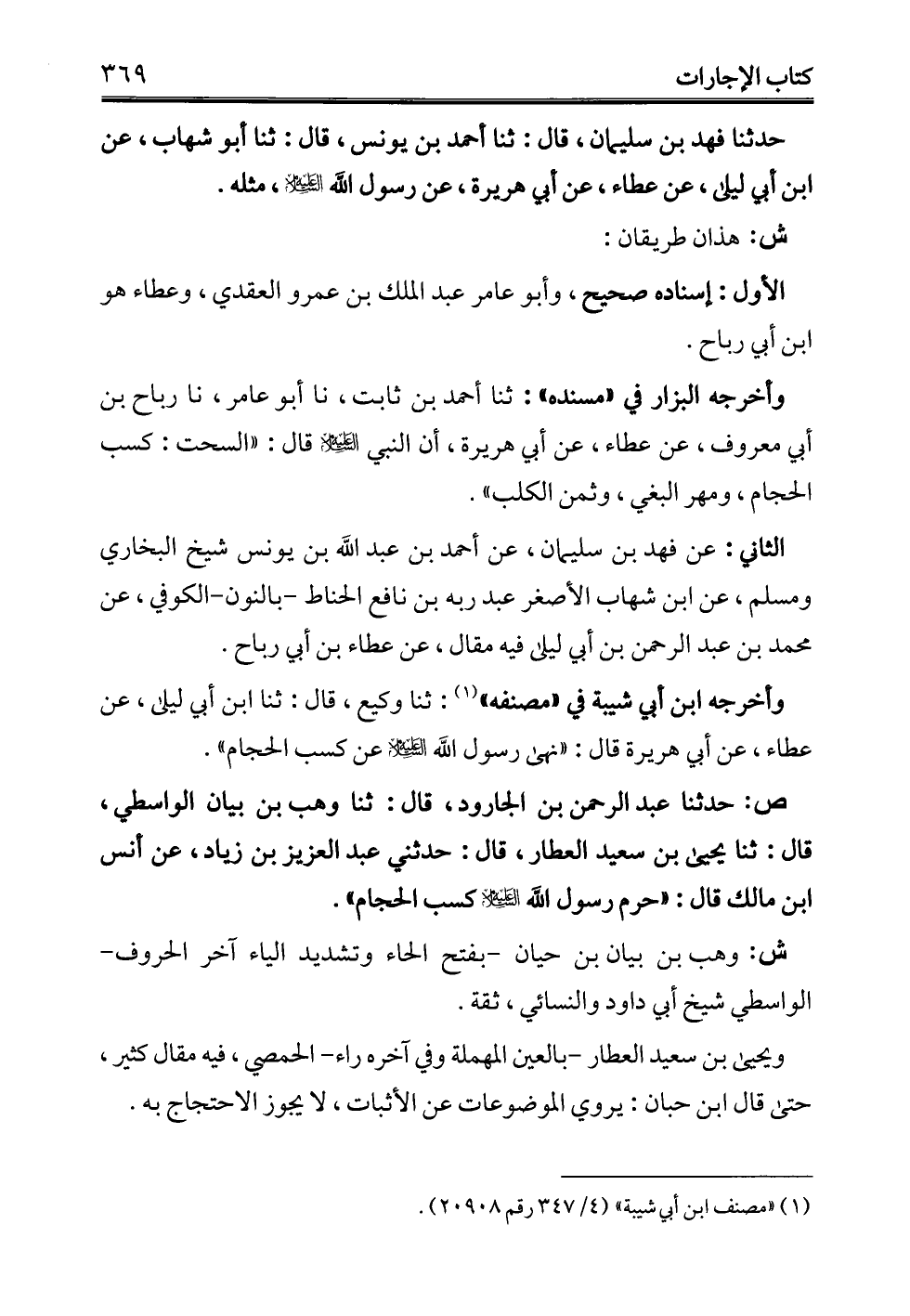وأخرجه ابن أبي شيبة في "مصنفه" (¬1): ثنا وكيع، قال: ثنا ابن أبي ليلى، عن عطاء، عن أبي هريرة قال: "نهى رسول الله -عليه السلام- عن كسب الحجام".