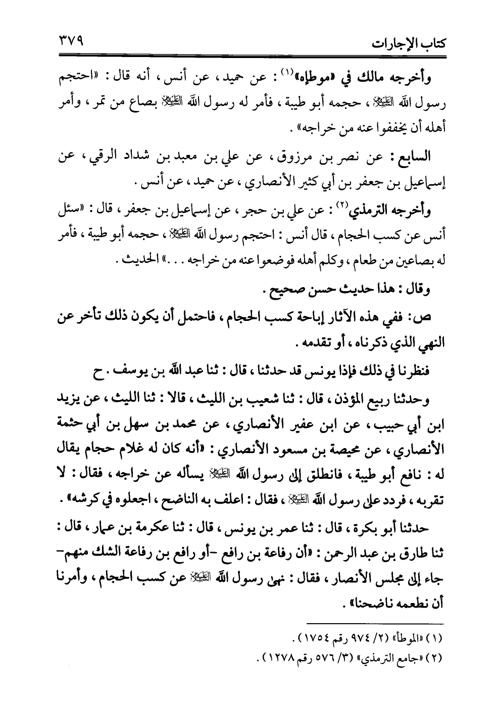 ص: ففي هذه الآثار إباحة كسب الحجام، فاحتمل أن يكون ذلك تأخر عن النهي الذي ذكرناه، أو تقدمه.
