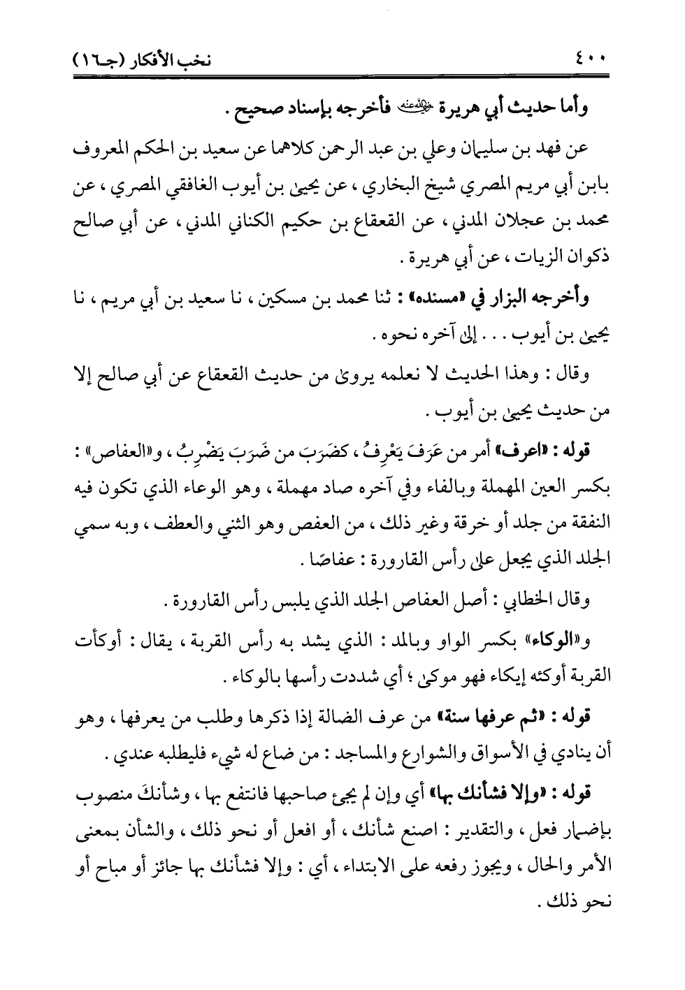 كتاب نخب الأفكار في تنقيح مباني الأخبار في شرح معاني الآثار (اسم الجزء: 16)