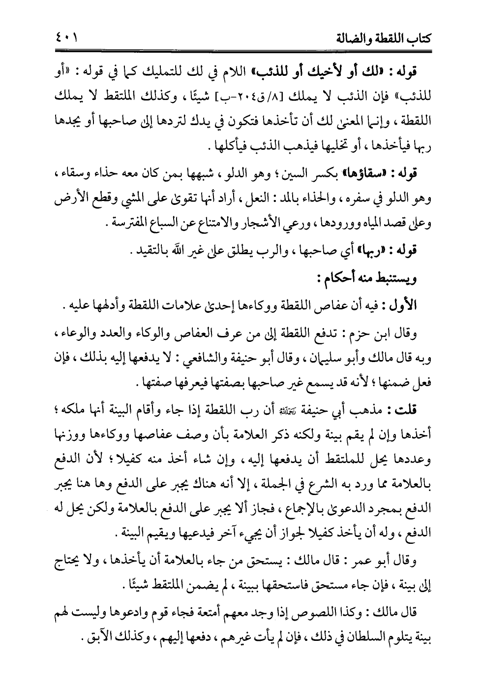 قوله: "لك أو لأخيك أو للذئب" اللام في لك للتمليك كما في قوله: "أو للذئب" فإن الذئب لا يملك شيئًا، وكذلك الملتقط لا يملك اللقطة، وإنما المعنى لك أن تأخذها فتكون في يدك لتردها إلى صاحبها أو يجدها ربها فيأخذها، أو تخليها فيذهب الذئب فيأكلها.