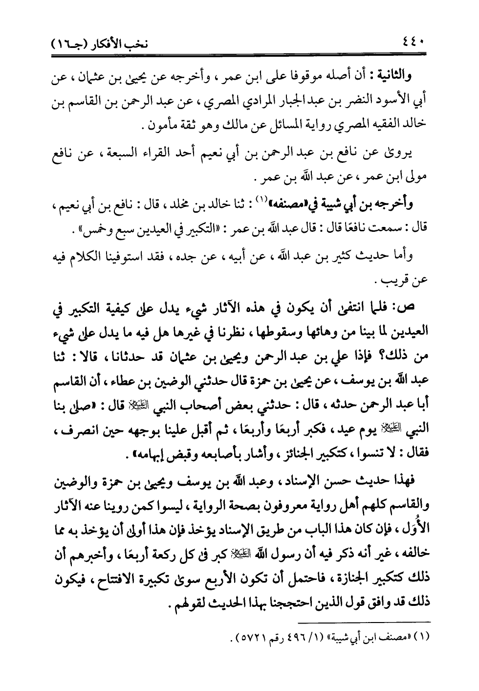 (¬1) "مصنف ابن أبي شيبة" (1/ 496 رقم 5721).