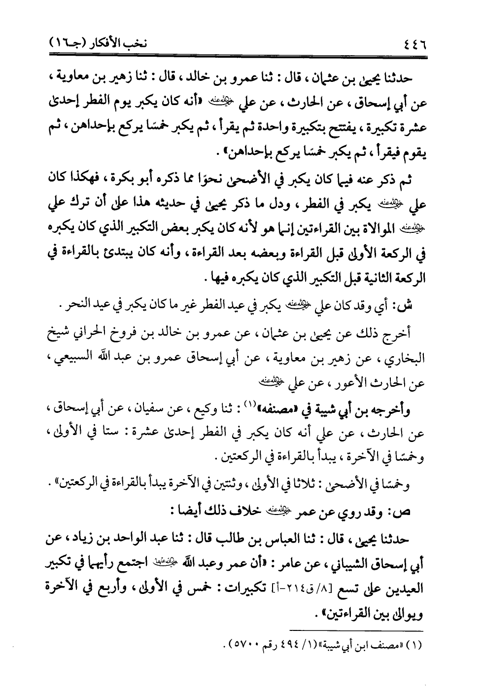 (¬1) "مصنف ابن أبي شيبة" (1/ 494 رقم 5700).