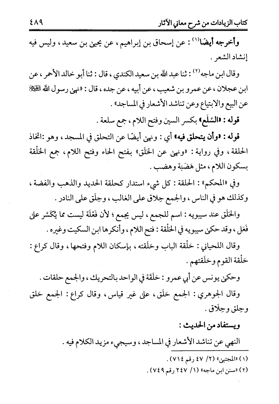 النهي عن تناشد الأشعار في المساجد، وسيجيء مزيد الكلام فيه.
