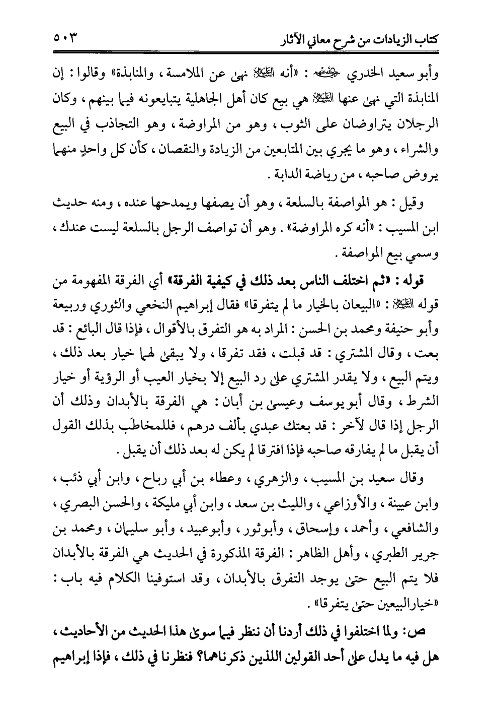 وقال سعيد بن المسيب، والزهري، وعطاء بن أبي رباح، وابن أبي ذئب، وابن عيينة، والأوزاعي، والليث بن سعد، وابن أبي مليكة، والحسن البصري، والشافعي، وأحمد، وإسحاق، وأبو ثور، وأبو عبيد، وأبو سليمان، ومحمد بن جرير الطبري، وأهل الظاهر: الفرقة المذكورة في الحديث هي الفرقة بالأبدان فلا يتم البيع حتى يوجد التفرق بالأبدان، وقد استوفينا الكلام فيه باب: "خيار البيعين حتى يتفرقا".