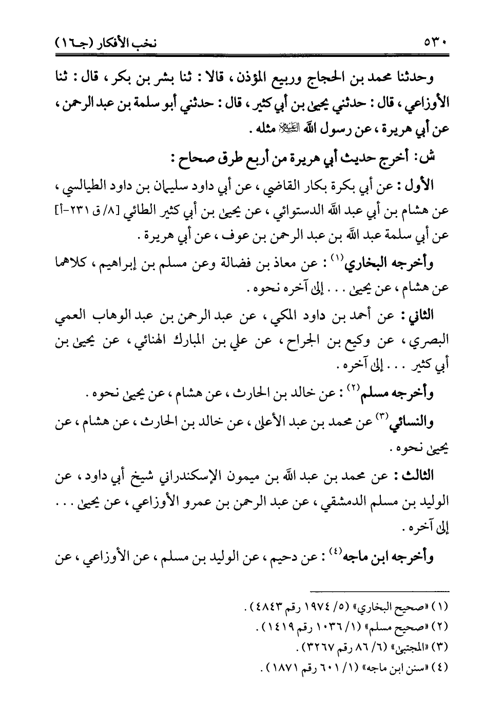 ش: أخرج حديث أبي هريرة من أربع طرق صحاح: