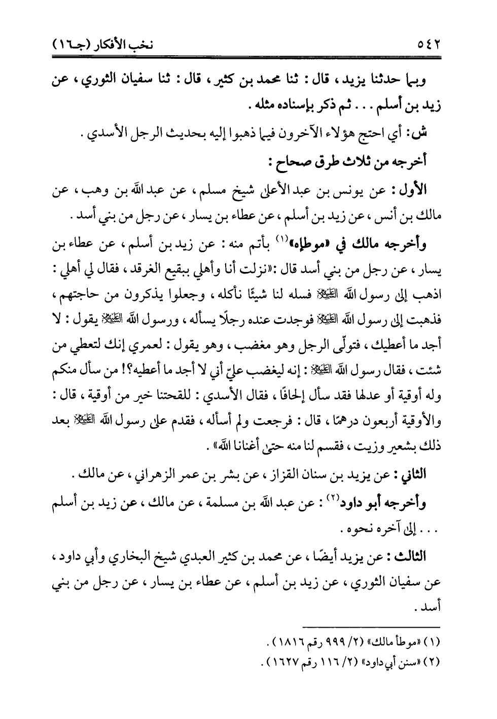 الثالث: عن يزيد أيضًا، عن محمد بن كثير العبدي شيخ البخاري وأبي داود، عن سفيان الثوري، عن زيد بن أسلم، عن عطاء بن يسار، عن رجل من بني أسد.