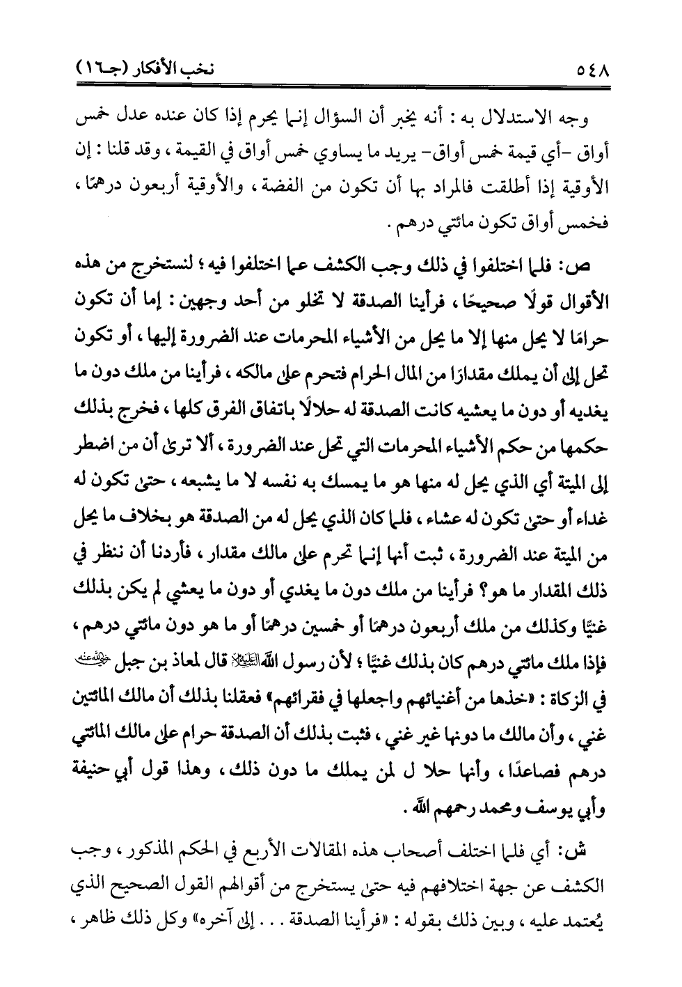 كتاب نخب الأفكار في تنقيح مباني الأخبار في شرح معاني الآثار (اسم الجزء: 16)
