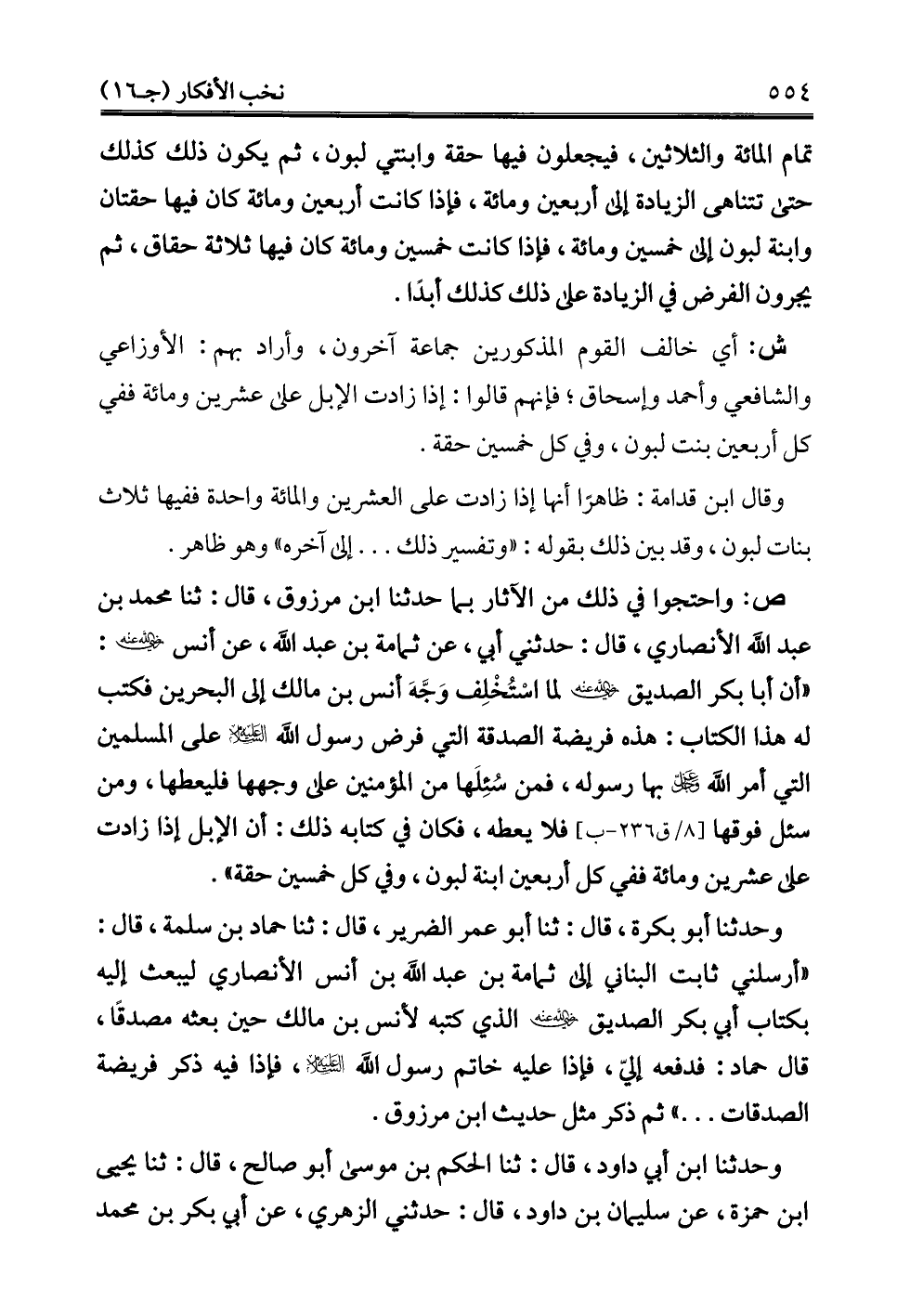 كتاب نخب الأفكار في تنقيح مباني الأخبار في شرح معاني الآثار (اسم الجزء: 16)
