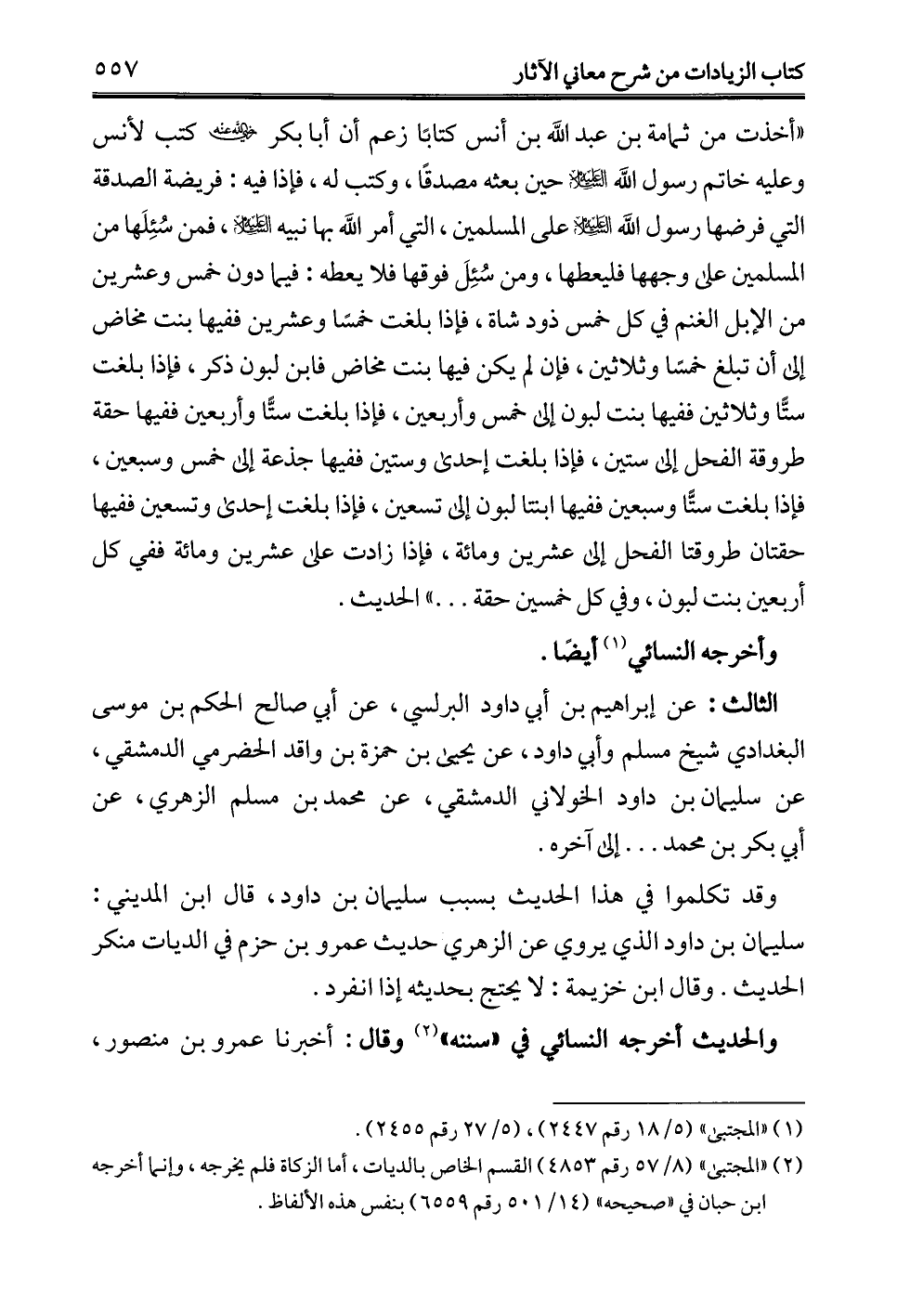 (¬2) "المجتبى" (8/ 57 رقم 4853) القسم الخاص بالديات، أما الزكاة فلم يخرجه، وإنما أخرجه ابن حبان في "صحيحه" (14/ 501 رقم 6559) بنفس هذه الألفاظ.
