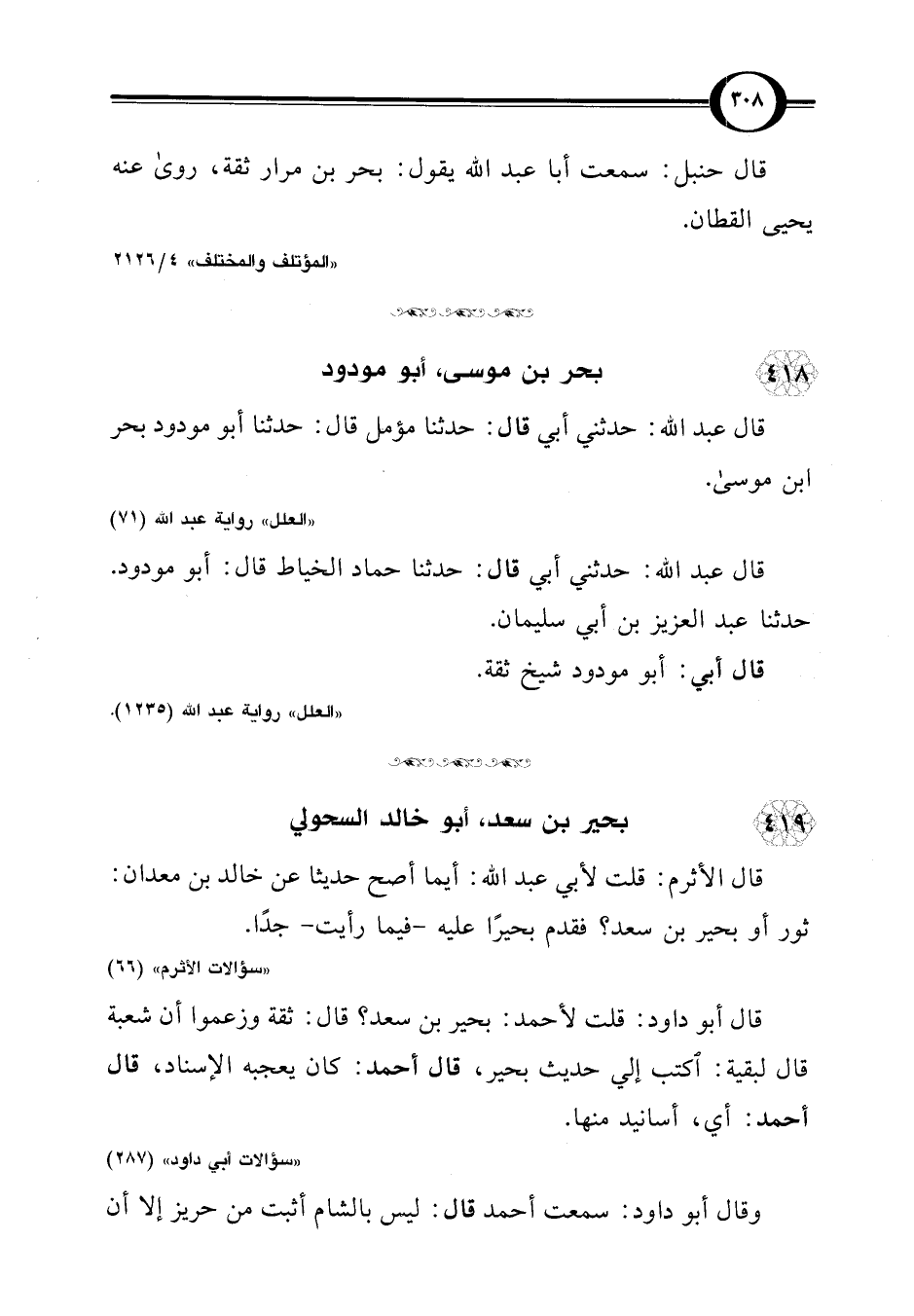 قال عبد اللَّه: حدثني أبي قال: حدثنا مؤمل قال: حدثنا أبو مودود بحر ابن موسى.