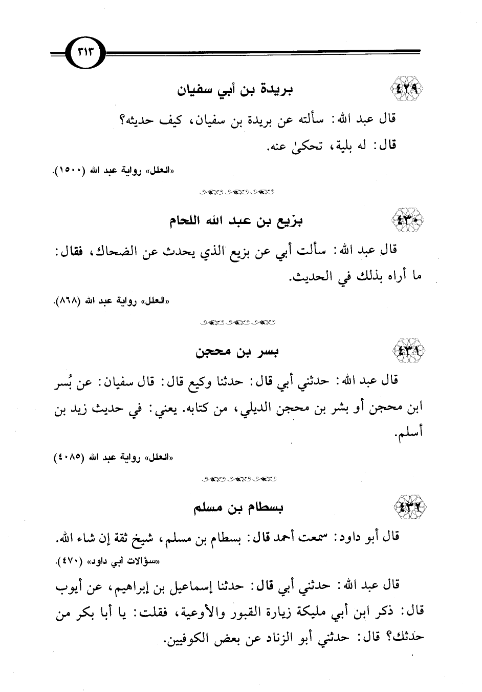 قال أبو داود: سمعت أحمدقال: بسطام بن مسلم، شيخ ثقة إن شاء اللَّه.