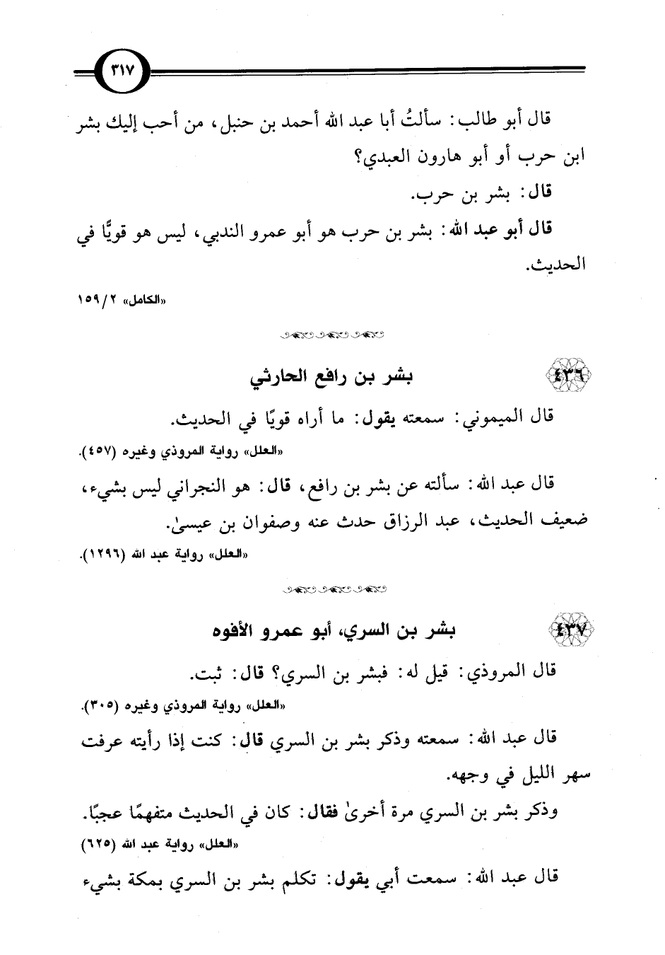 قال أبو طالب: سألتُ أبا عبد اللَّه أحمد بن حنبل، من أحب إليك بشر ابن حرب أو أبو هارون العبدي؟