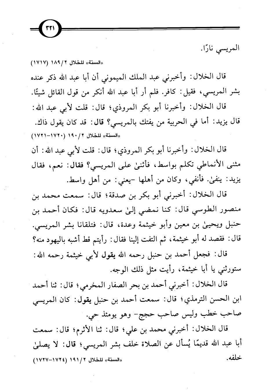 "السنة" للخلال 2/ 190 (1720 - 1721)