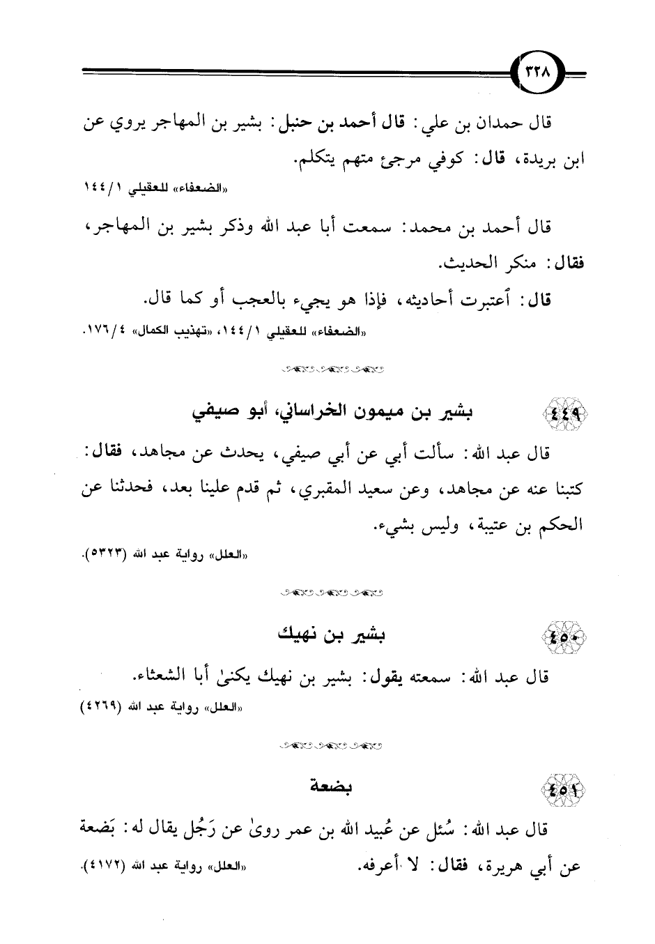 "الضعفاء" للعقيلي 1/ 144، "تهذيب الكمال" 4/ 176.