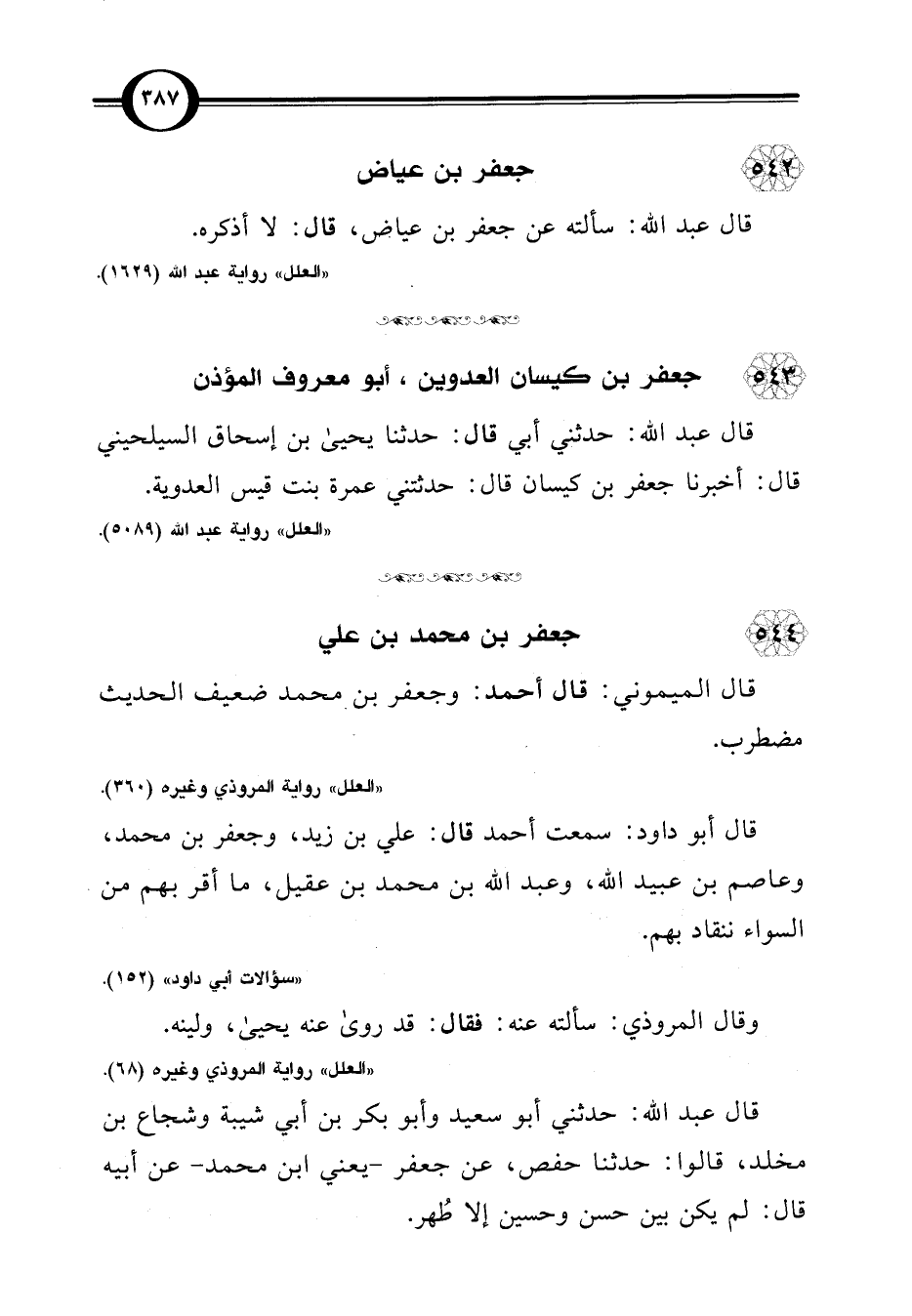 قال أبو داود: سمعت أحمد قال: علي بن زيد، وجعفر بن محمد، وعاصم بن عبيد اللَّه، وعبد اللَّه بن محمد بن عقيل، ما أقر بهم من السواء ننقاد بهم.