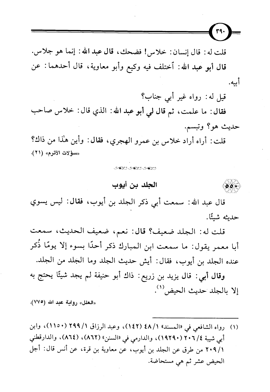 فقال: ما علمت، ثم قال لي أبو عبد اللَّه: الذي قال: خلاس صاحب حديث هو؟ وتبسم.