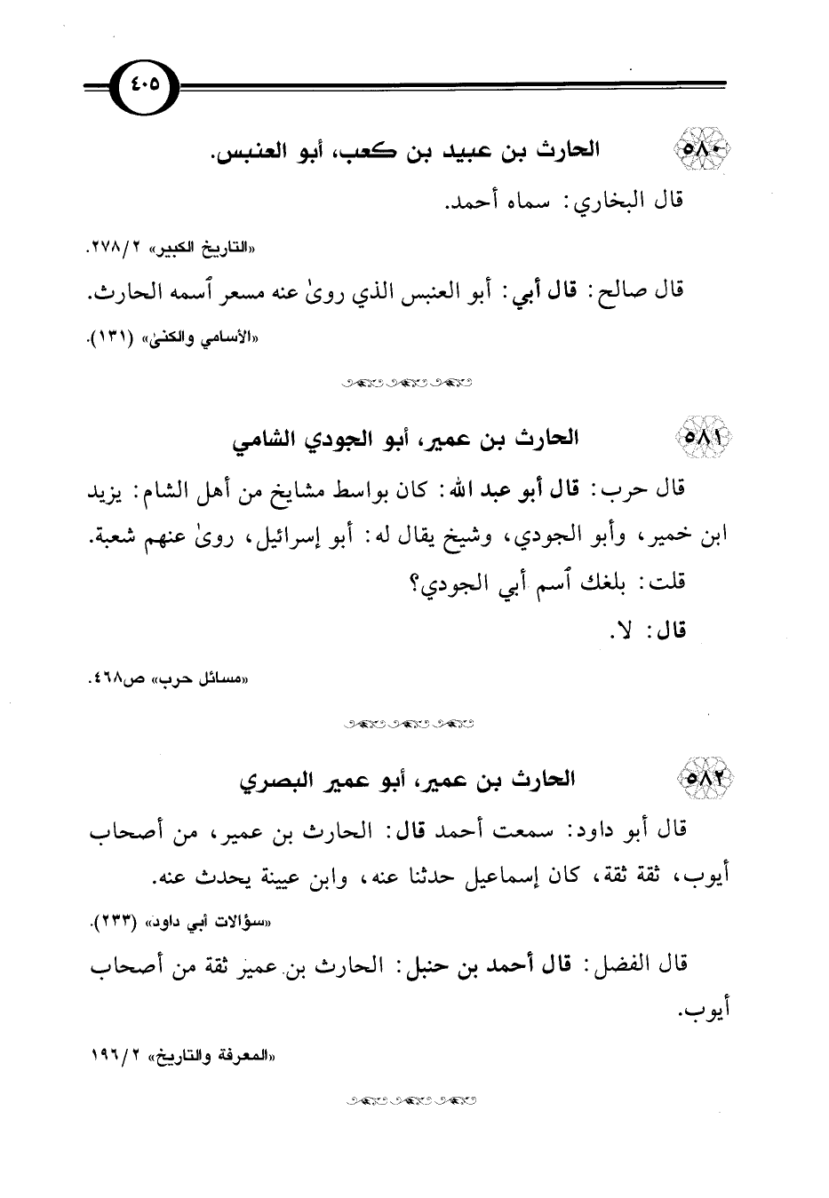 قال الفضل: قال أحمد بن حنبل: الحارث بن عمير ثقة من أصحاب أيوب.