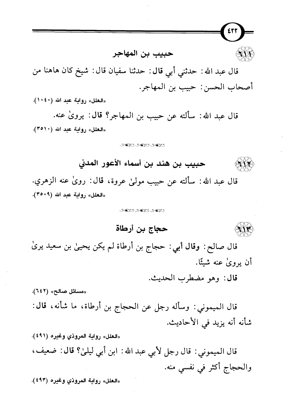 قال عبد اللَّه: حدثني أبي قال: حدثنا سفيان قال: شيخ كان هاهنا من أصحاب الحسن: حبيب بن المهاجر.