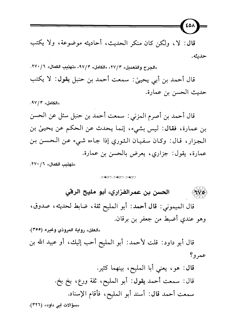 "الجرح والتعديل" 3/ 27، "الكامل" 3/ 97، "تهذيب الكمال" 6/ 270.