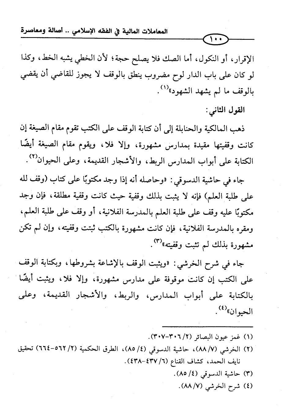 جاء في حاشية الدسوقي: "وحاصله أنه إذا وجد مكتوبًا على كتاب (وقف لله على طلبة العلم) فإنه لا يثبت بذلك وقفية حيث كانت وقفية مطلقة، فإن وجد مكتوبًا عليه وقف على طلبة العلم بالمدرسة الفلانية، أو وقف على طلبة العلم، ومقره بالمدرسة الفلانية، فإن كانت مشهورة بالكتب ثبتت وقفيته، وإن لم تكن مشهورة بذلك لم تثبت وقفيته" (¬٣).