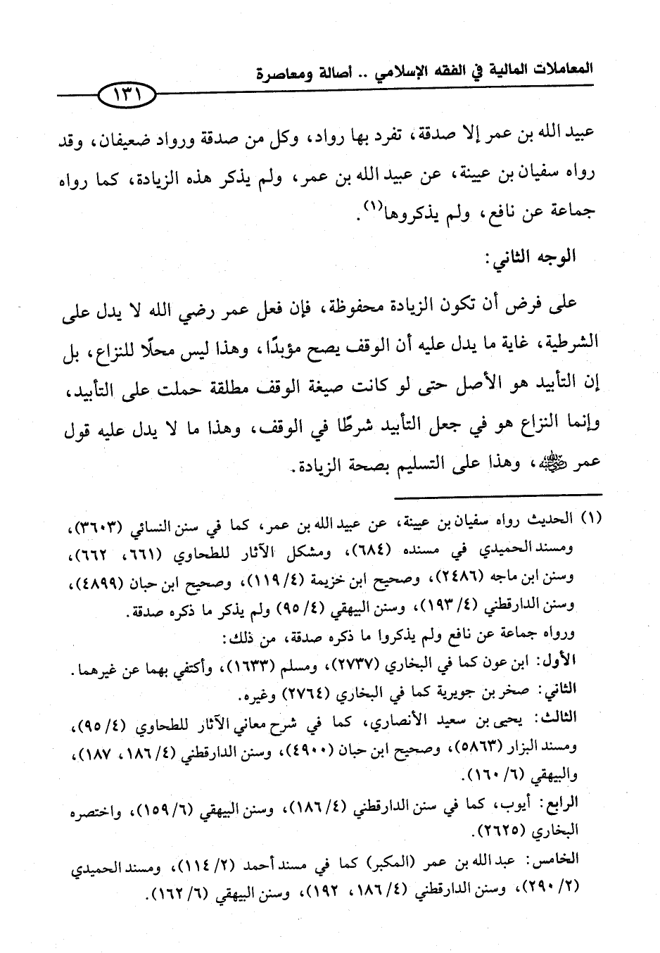 (¬١) الحديث رواه سفيان بن عيينة، عن عبيد الله بن عمر، كما في سنن النسائي (٣٦٠٣)، ومسند الحميدي في مسنده (٦٨٤)، ومشكل الآثار للطحاوى (٦٦١، ٦٦٢)، وسنن ابن ماجه (٢٤٨٦)، وصحيح ابن خزيمة (٤/ ١١٩)، وصحيح ابن حبان (٤٨٩٩)، وسنن الدارقطني (٤/ ١٩٣)، وسنن البيهقي (٤/ ٩٥) ولم يذكر ما ذكره صدقة.