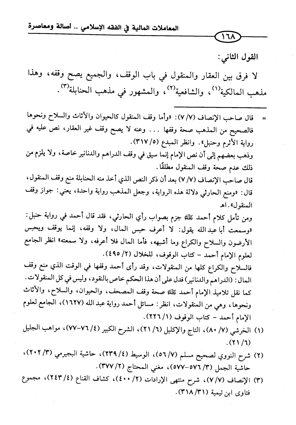 فالسلاح والكراع كلها من المنقولات، وقد رأى أحمد وقفها في الوقت الذي منع وقف المال: (الدراهم والدنانير) فدل على أن هذا الحكم خاص بالنقود، وليس في كل المنقولات.