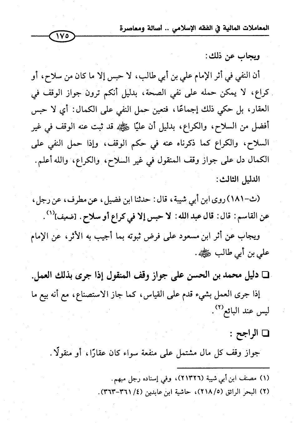 دليل محمَّد بن الحسن على جواز وقف المنقول إذا جرى بذلك العمل.